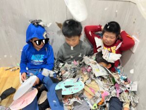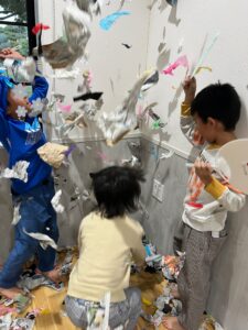 新聞紙・画用紙・お花紙をちぎってストレス発散&普段できない!ちぎり紙を部屋いっぱいにしちゃおう〜イベントです✨