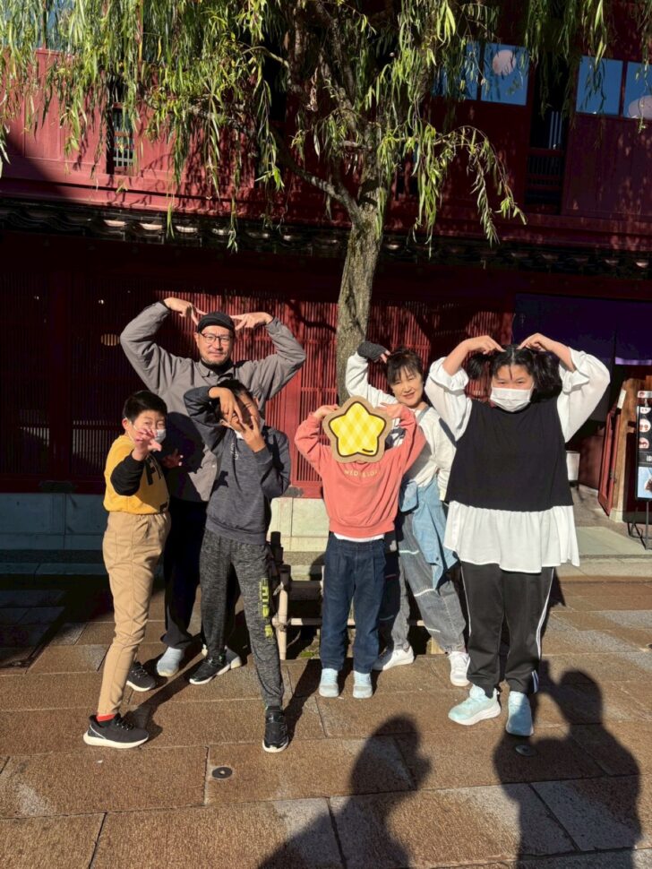 最後にキレイなもみじ🍁と一緒に『ハイ、チーズ』ほとんどの子どもたちが、初めての茶屋街で楽しんでもらえて良かったです❤️