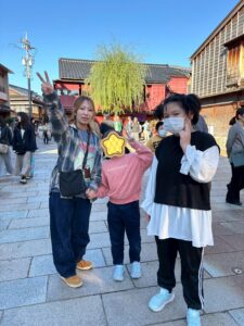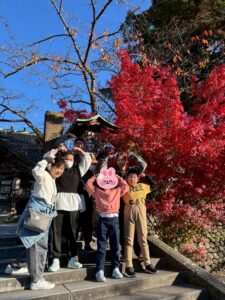 最後にキレイなもみじ🍁と一緒に『ハイ、チーズ』ほとんどの子どもたちが、初めての茶屋街で楽しんでもらえて良かったです❤️