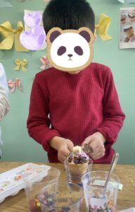 上にはクランキーチョコをアイスクリームに見立てて乗せたら完成🩷